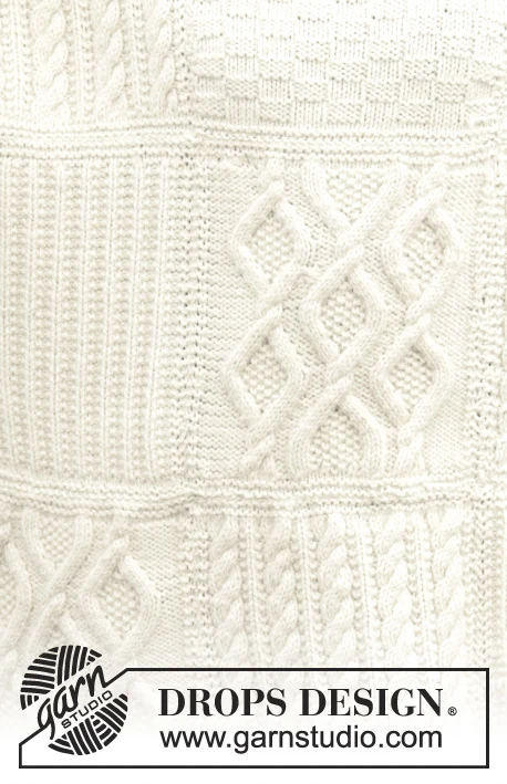 Poncho DROPS tricoté avec manches et fente sur le côté en « DROPS Nepal » avec des carrés en torsades et en point structuré. Taille unique.