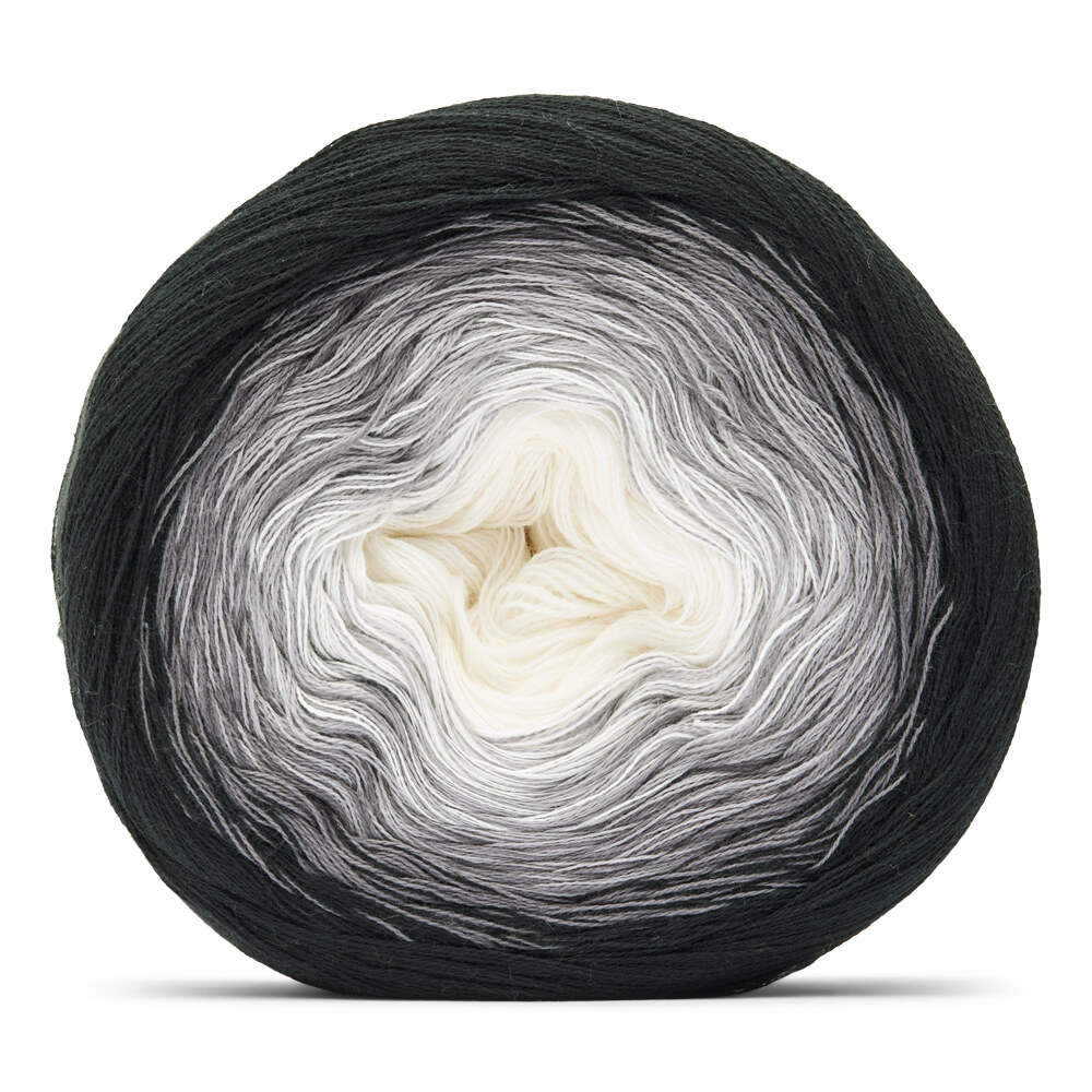 Ce fil est parfait pour des créations légères et aérées comme des châles, des vêtements d'été ou des pièces pour bébés. Les transitions de couleur ressortent magnifiquement. Vous pouvez commencer de l'intérieur ou de l'extérieur selon l'effet désiré.