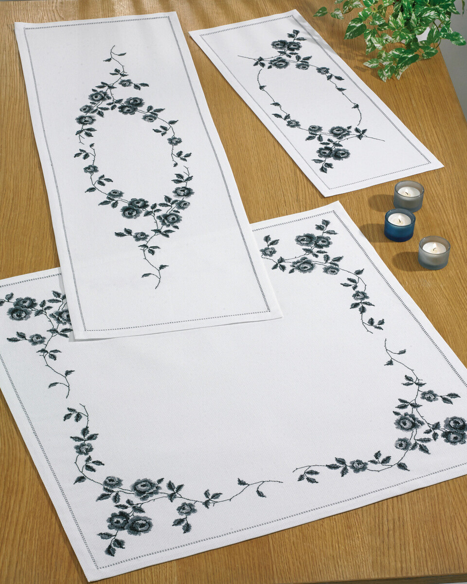 Kit de broderie Roses grimpantes en gris 25 x 61 cm