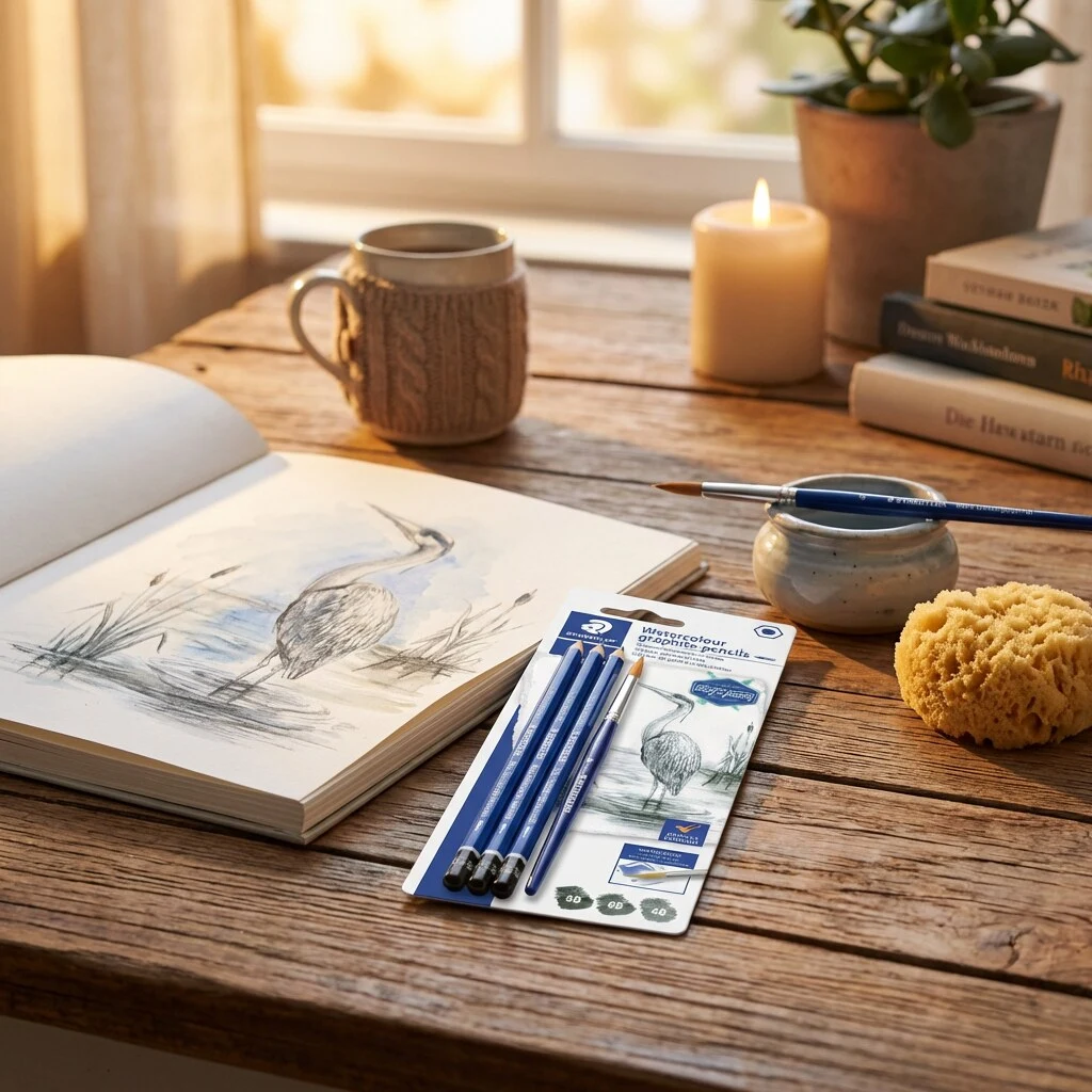 - 2-en-1 : crayon sec et effet aquarelle : Dessinez d’abord au graphite pour des lignes précises, puis activez à l’eau pour obtenir des ombres douces et des effets de lavis. Une grande liberté dans une seule et même technique.