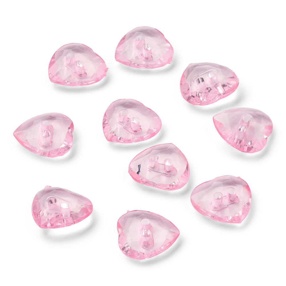 Ces boutons en cristal rose, en forme de cœur, de LindeHobby ont une surface brillante et facettée qui reflète magnifiquement la lumière. Chaque bouton mesure 12 mm de diamètre et est livré en pack de 10. Ils sont fabriqués en plastique léger et conviennent aussi bien à la décoration qu’à la fermeture fonctionnelle.