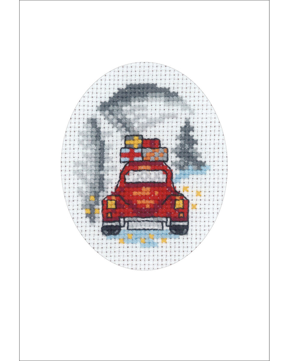 Kit de broderie Carte de Noël Voiture rouge 9 x 13 cm
