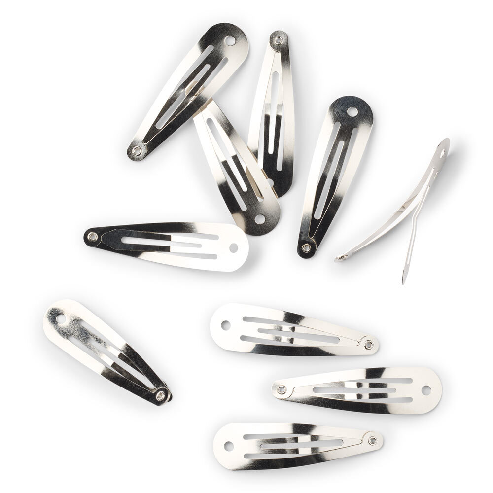 Contenu : 10 barrettes clic-clac argentées