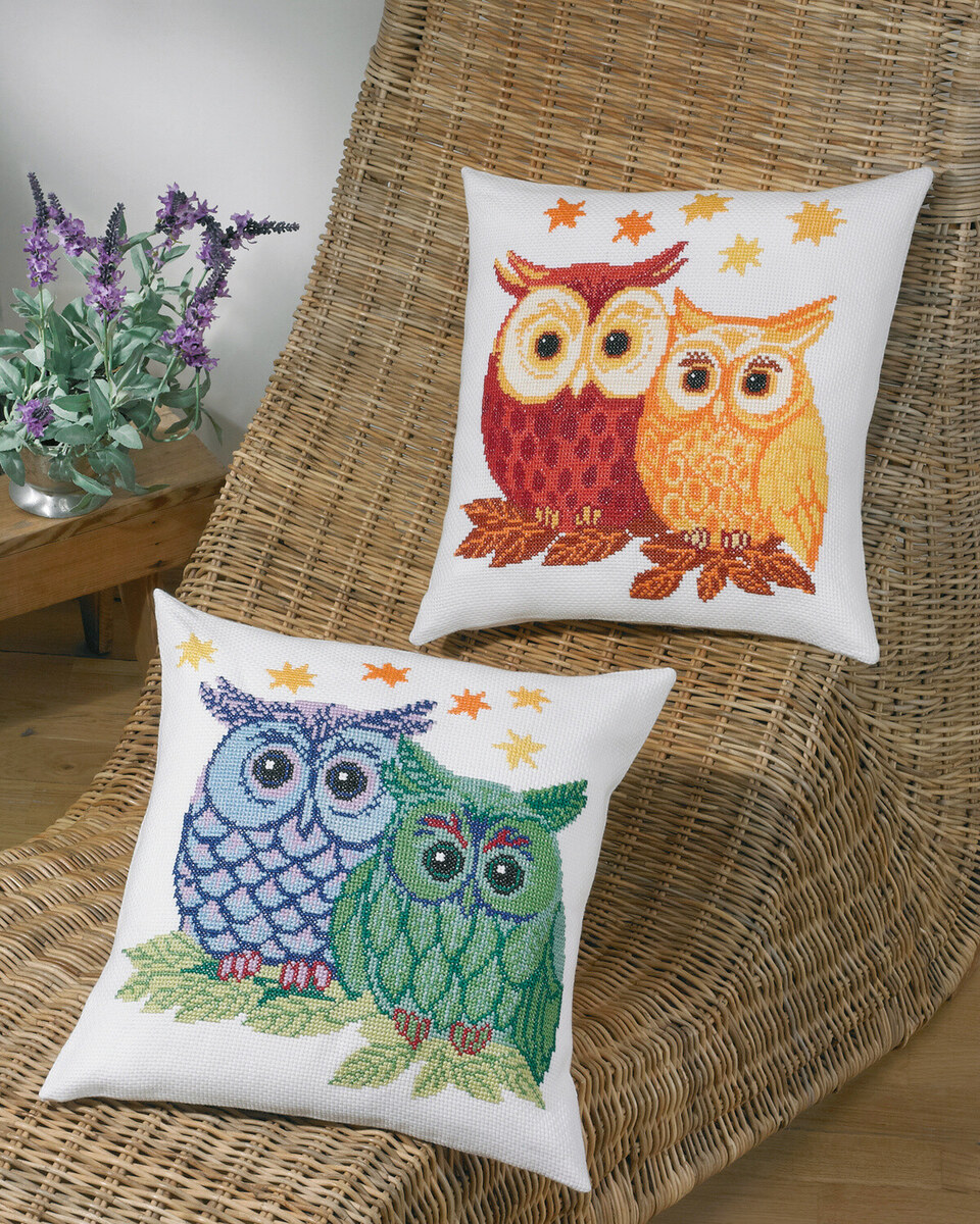 Kit de broderie Chouettes bleu/vert 42x42cm