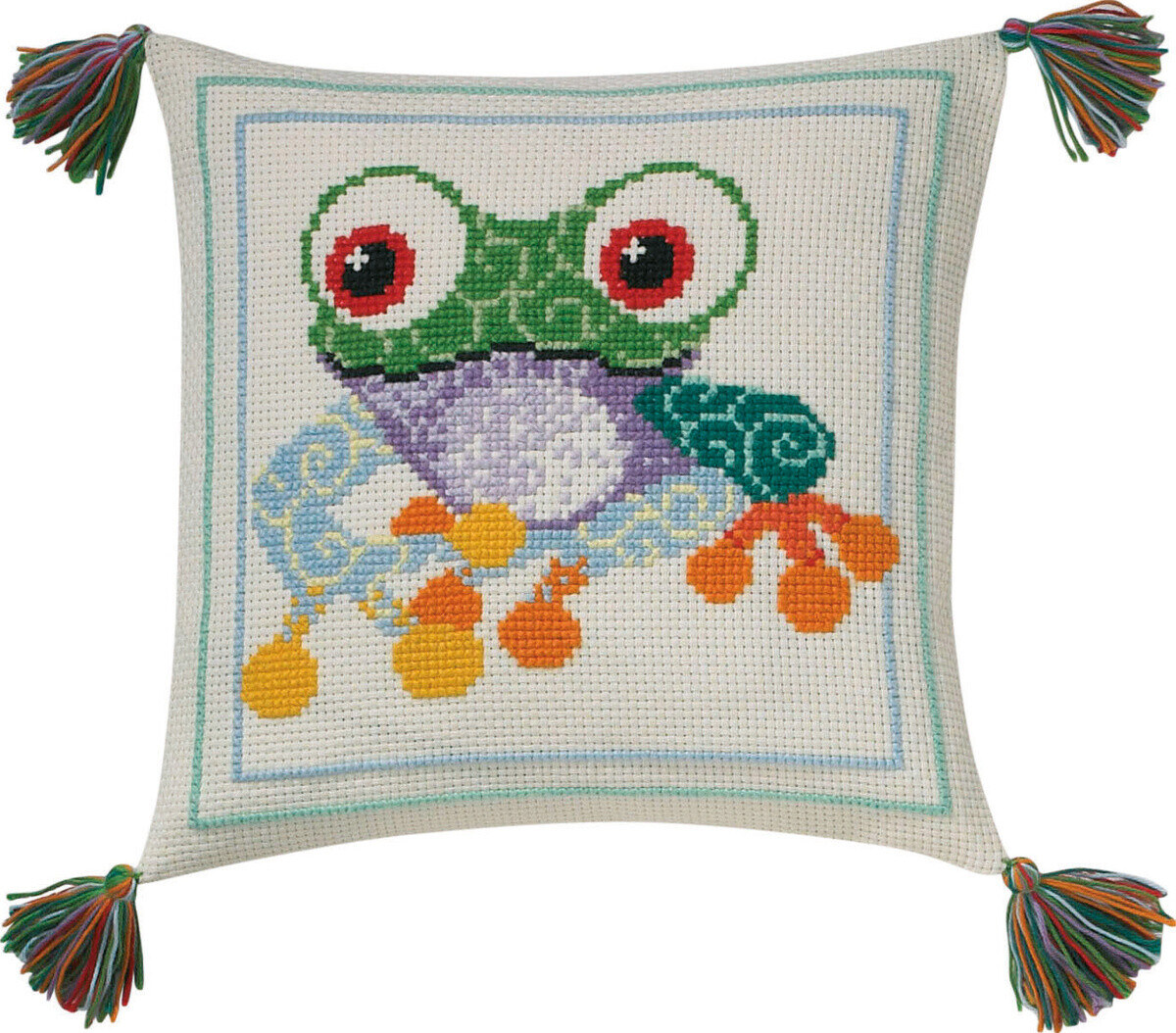 Kit de Broderie Coussin Enfant Grenouille 30x30 cm