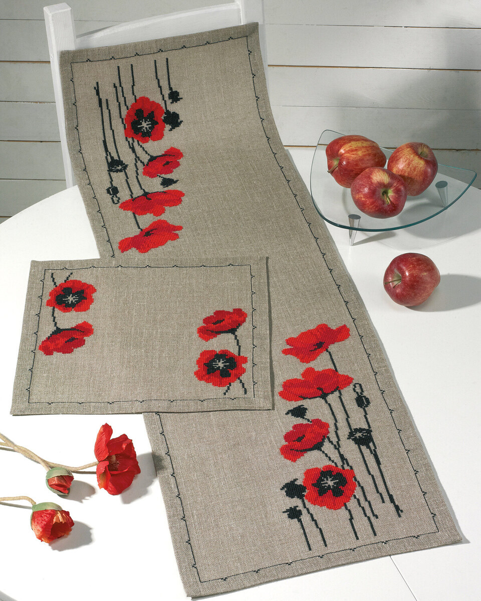 Kit de broderie Titre : Coquelicot sur nature 36 x 117 cm