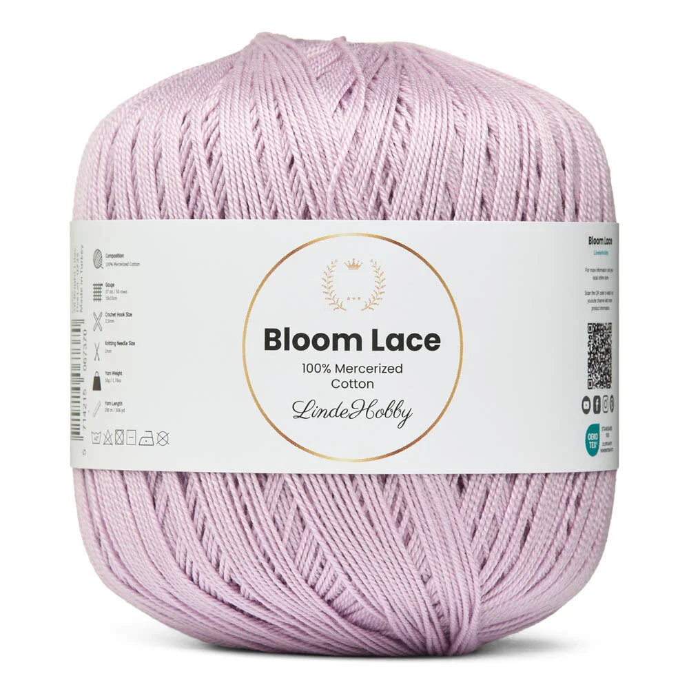 LindeHobby Bloom Lace est un fil lace de luxe fabriqué à 100% en coton mercerisé. Le fil présente une surface lisse et brillante ainsi qu’une structure dense, offrant un rendu exclusif et raffiné au produit fini. Ce fil fin et délicat est parfait pour les projets qui nécessitent de la précision et une finition élégante.
