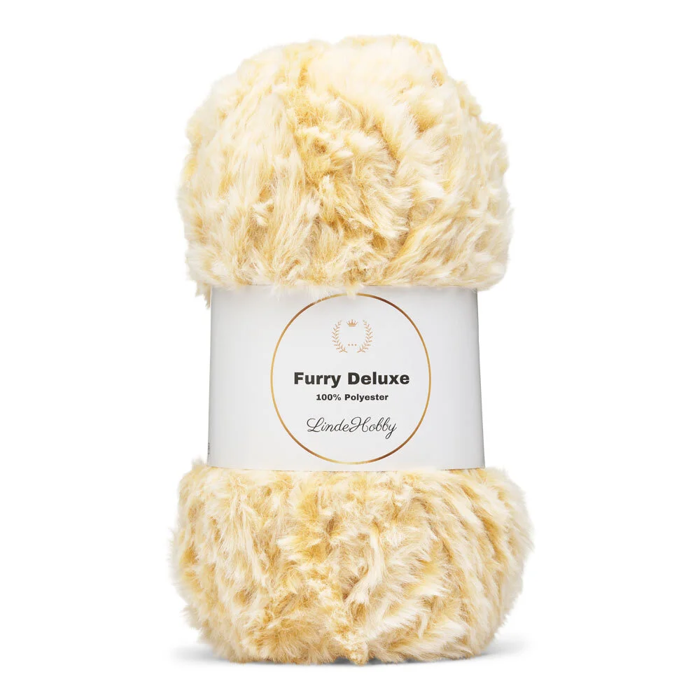 LindeHobby Furry Deluxe est un fil pelucheux de luxe avec une texture douce et fluffy qui apporte à vos projets un aspect vivant et décoratif. Le fil est fabriqué en 100% polyester et est parfait pour les détails ainsi que pour des accessoires entiers lorsque l'on souhaite un effet peluche.