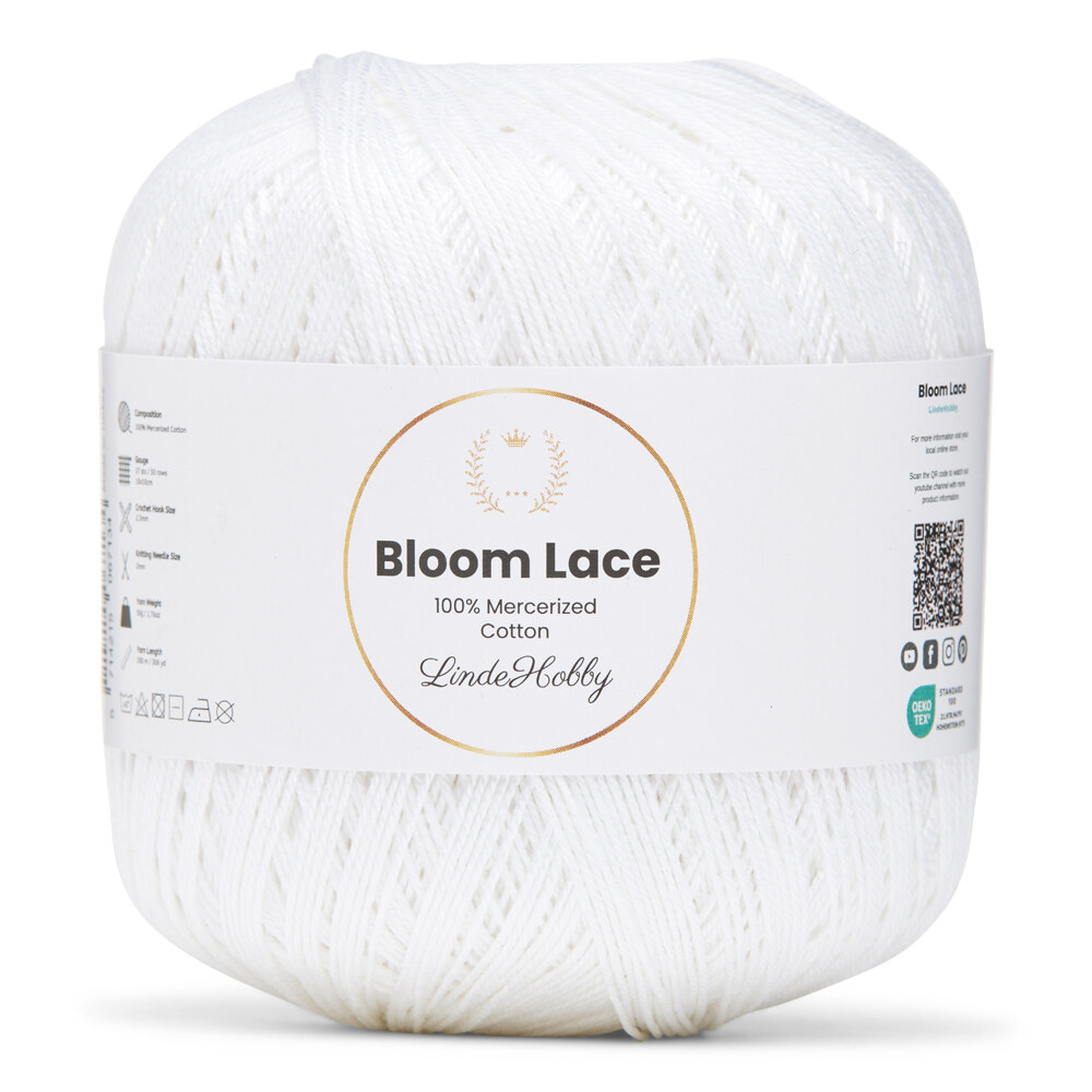 LindeHobby Bloom Lace est un fil lace de luxe fabriqué à 100% en coton mercerisé. Le fil présente une surface lisse et brillante ainsi qu’une structure dense, offrant un rendu exclusif et raffiné au produit fini. Ce fil fin et délicat est parfait pour les projets qui nécessitent de la précision et une finition élégante.