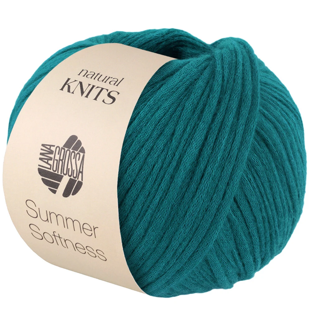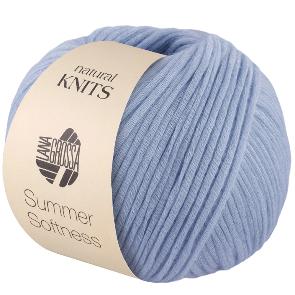 Lana Grossa Summer Softness est un fil léger et doux qui associe des matériaux naturels à une sensation luxueuse. Composé de 80% de coton et 20% de laine mérinos, ce fil possède une structure unique où un fin fil de coton est entouré de fibres aérées de mérinos. Le résultat est une texture élégante, légère et respirante qui est agréable au contact de la peau.