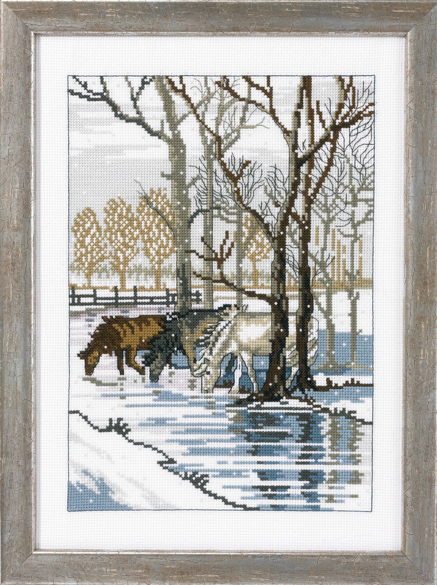 Kit de broderie 3 chevaux près de la rivière 35 x 25 cm R5797